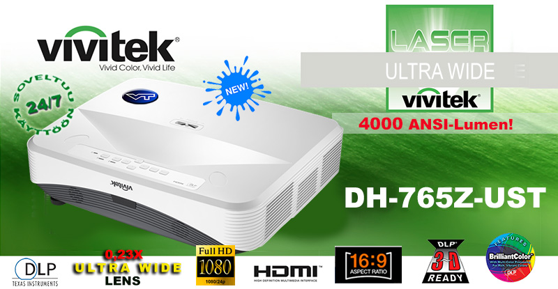 DH765Z-UST on 4000 ANSI-lumenin kirkkaudella varustettu FullHD resoluution Laser ultra lähiprojektori, täynnä viimeisintä huipputekniikkaa,