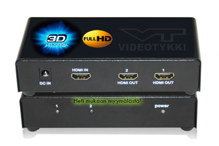 HDMI-Jakovahvistin 1 < 2 - 1 x sisääntulo < 2 x ulostulo - HDMI 1.4 - FullHD 3D 24Hz - 1080p/60Hz 12 Bit Color Depth - HDCP 1.2 - Dolby TrueHD & DTS Master - Deep Color - 12V/2A verkkolaite 89,- |