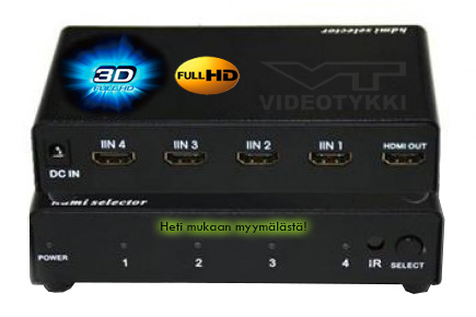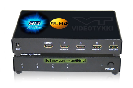 - 1 x sisääntulo < 4 x ulostulo - HDMI 1.4 - FullHD 3D 24Hz - 1080p/60Hz 12 Bit Color Depth - HDCP 1.2 - Dolby TrueHD & DTS Master - Deep Color - 12V/2A verkkolaite 149,- |