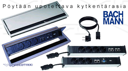 kannella varustettu Bachmann pistorasiayksiköt. Multimedia 1 mallissa 3 x Shuko sähköliit., 2 x Cat5e, 2 x USB, 1 x VGA ja 1 x 3,5mm audioliitäntä. SAATAVANA TILAUKSESTA MYÖS ASIAKKAAN TOIVOMALLA KOKOONPANOLLA. |