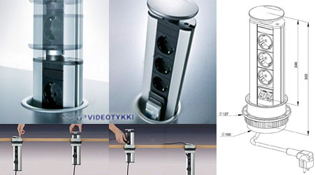 varustettu nostettava pistorasiayksikkö. Vakio 1 mallissa 2 x Shuko sähköliit., 2 x Cat5e, 1 x VGA ja 1 x 3,5mm audioliitäntä. SAATAVANA TILAUKSESTA MYÖS ASIAKKAAN TOIVOMALLA KOKOONPANOLLA. |