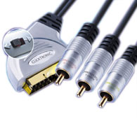 KULLATTU KORKEALAATUINEN SCART- 3 x RCA (Video + stereoääni) KAAPELI METALLIKUORISELLA LIITTIMELLÄ, JOSSA KÄYTTÖSUUNNAN VALINTAKYTKIN | ||||||||||